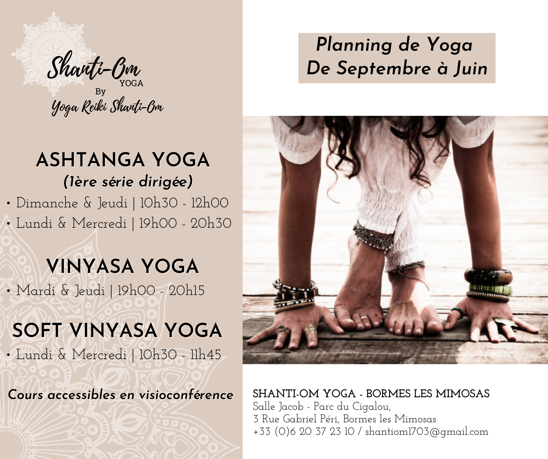 Prochainement, retrouvez Yoga Reiki Shanti Om autours de plusieurs événements de la saison 2025. Par exemple, Sarah sera présente dans un hôtel pour vous proposer une séance de yoga et un brunch